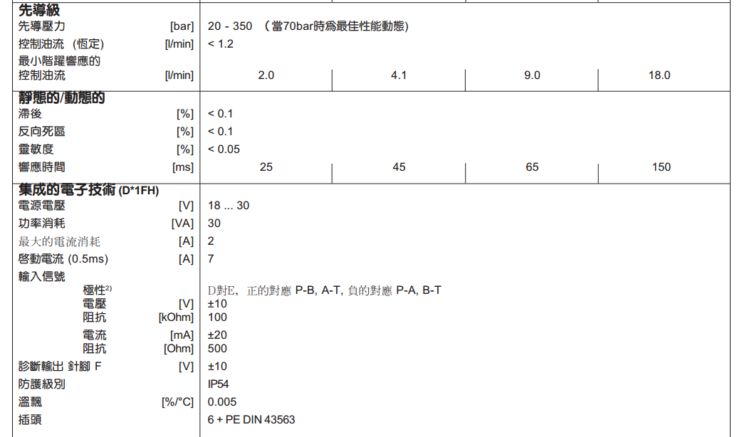 典型的应用是:流量控制精确和可实现流量调节,在快速/低速特性下的工作运行带有阀芯位置监控于:压力机控制,动态位置调节和压力/流量关闭系统。