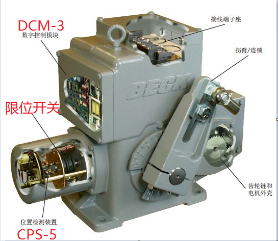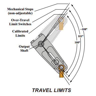 第三层 电子限位,出厂设定为最大100°或90°(通过DCM的校准按钮来设定位置)