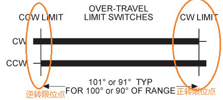如果起始位置执行器为顺时针开始工作,且与出厂设定的起始位置一致,仅需调整CW的凸轮;反之逆时针工作仅需调整CCW凸轮。