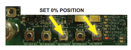 4. 按住DCM客户界面面板的“CALIBRATE”按 钮 , 然 后 按 下 “SET POS 0% ” 直到“ACKNOWLEDGE”灯闪亮。(注:如果起始位置和BECK工厂设定起始位置一致,此步骤可以略去)