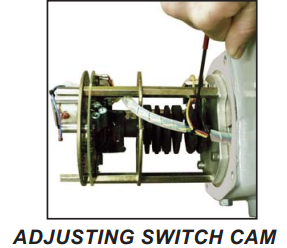 2. 使用转换开关驱动输出轴转动到合适位置,看到CW开关凸轮螺丝,使用7/64"六角扳手松开螺丝来松开凸轮(见下图)。