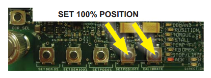 5. 将执行机构设置到所要达到的终点位置(即执行机构输出轴的理想物理位置对应100%的指令信号)。